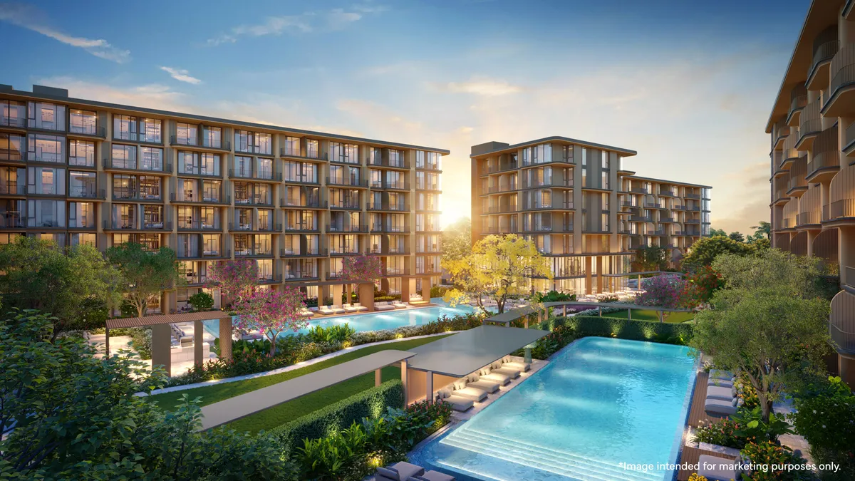 Tre edifici residenziali di sette piani ospitano 408 residenze completamente arredate, disponibili in configurazioni da 1, 2 e 3 camere, con metrature dai 45 ai 129 mq. Ogni appartamento celebra il design tropicale contemporaneo: finestre a tutta altezza che invitano la luce e il verde a entrare, ampie terrazze dove l'anima si distende, arredi premium e finiture di pregio. Gli spazi comuni diventano un'estensione naturale del proprio stile di vita: tre piscine da 25 metri, un fitness centre all'avanguardia, campo da tennis, yoga studio, ice bath, sauna, kids' club, area di lavoro flessibile, lounge residenziale, vasca idromassaggio e una spettacolare area barbecue sul rooftop — perché la bellezza del vivere si gusta anche al tramonto, con Phuket ai propri piedi.